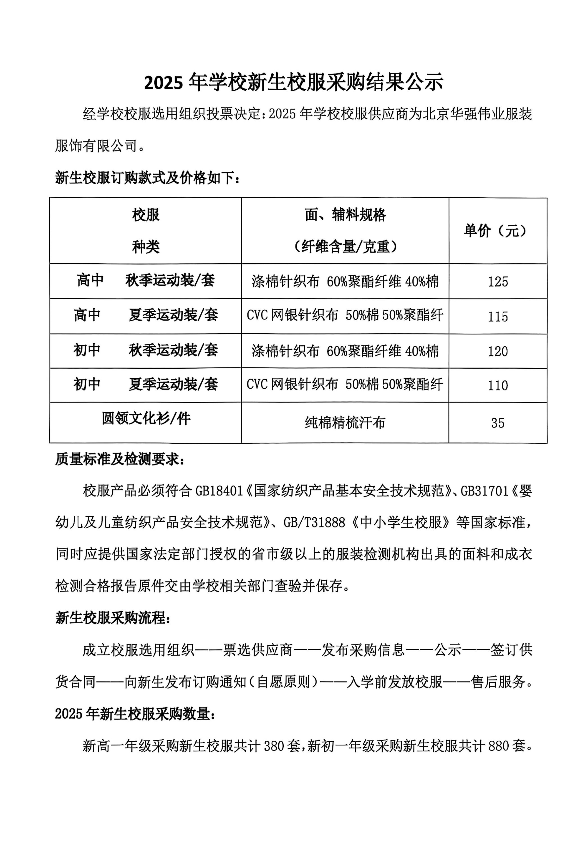 2025年新生校服采购结果公示